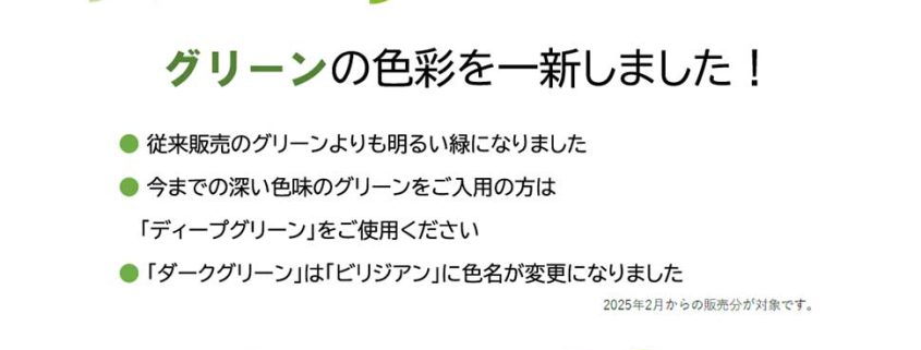 【プラ染め太郎】お客様のご要望に応えてグリーン系のカラーが新しくなりました2025-02-02/カテゴリ: ニュース >プラ染め太郎商品ページ https://toyas.co.jp/wp-content/uploads/2025/02/renewal.jpg 600 970 admin https://toyas.co.jp/wp-content/uploads/2018/04/logoXL.png admin2025-02-02 02:37:032025-02-02 02:45:14【プラ染め太郎】お客様のご要望に応えてグリーン系のカラーが新しくなりました