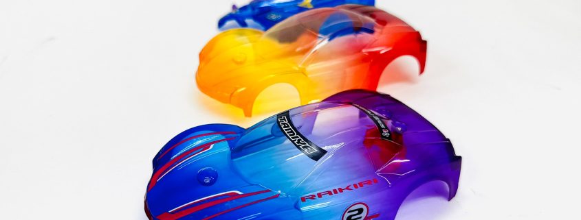【ミニ四駆カスタム】プラ染め太郎を使ってボディ(ポリカーボネート)をグラデーションにグラデーションに染色し着色する