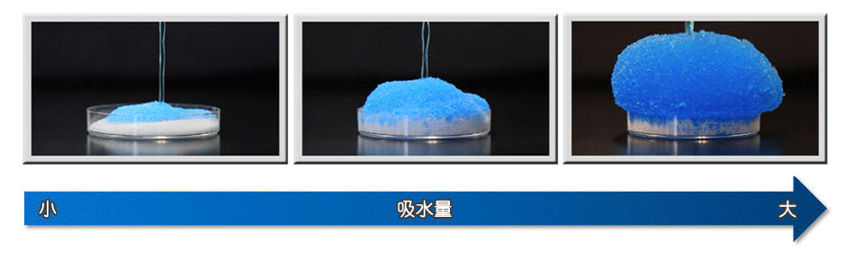 高吸水性樹脂(吸水性ポリマー、SAP)は自重の数百倍から1,000倍の水を吸収し、多少の圧力をかけても吸った水を離さない高分子材料です。