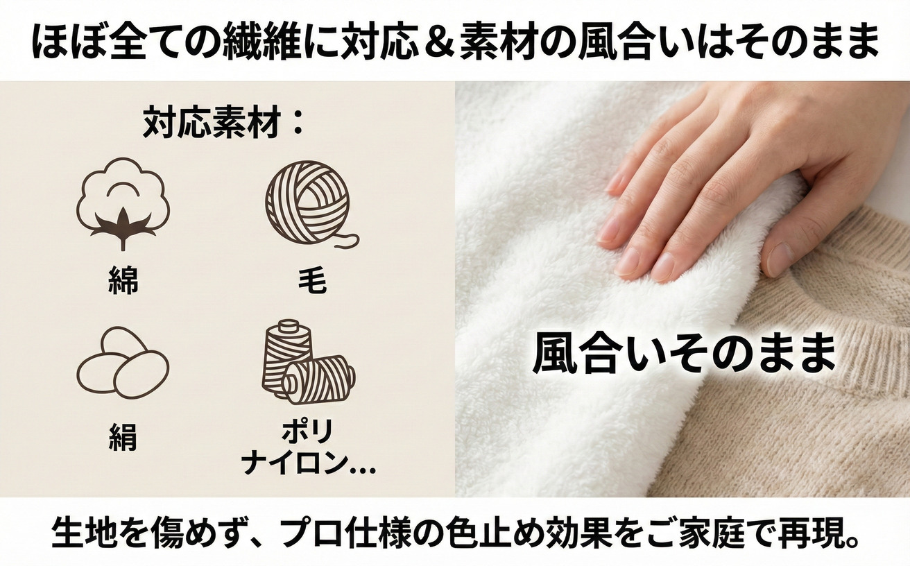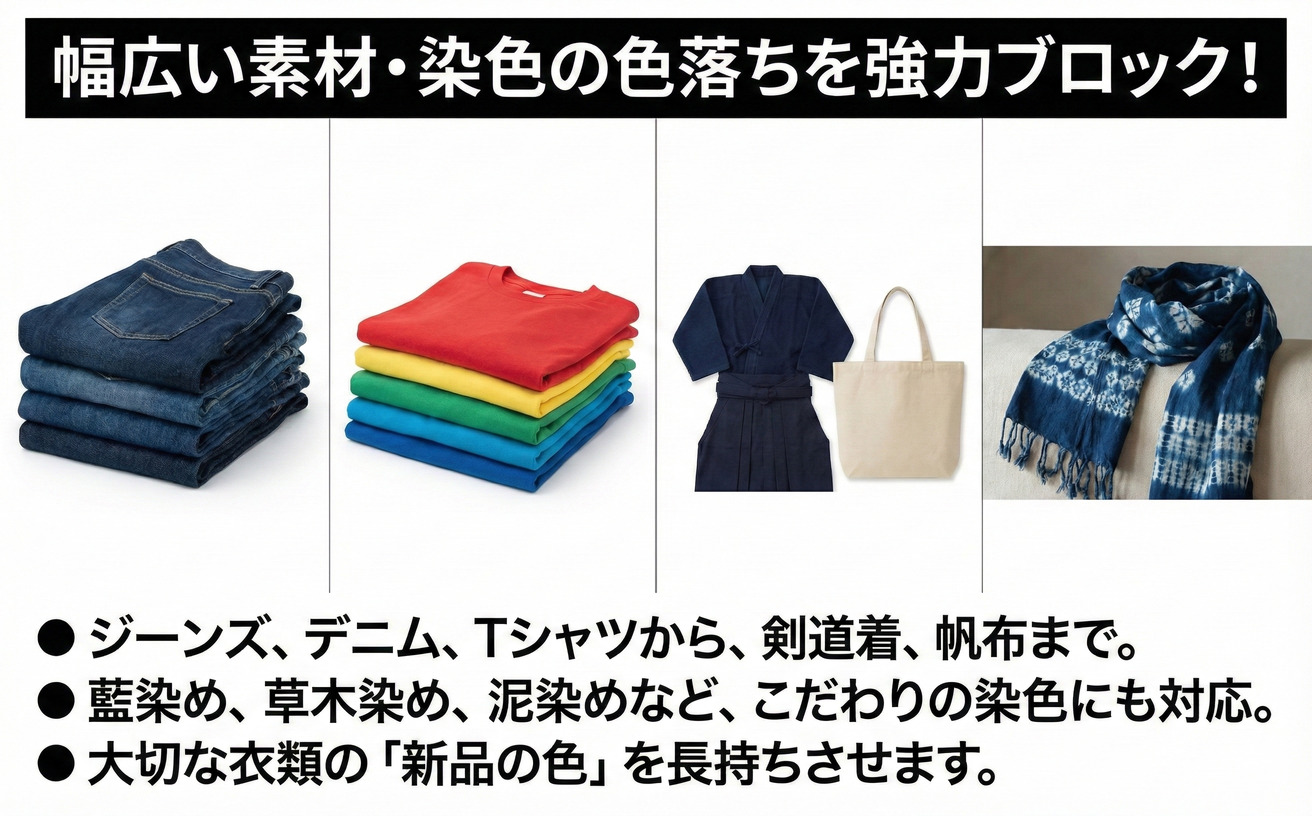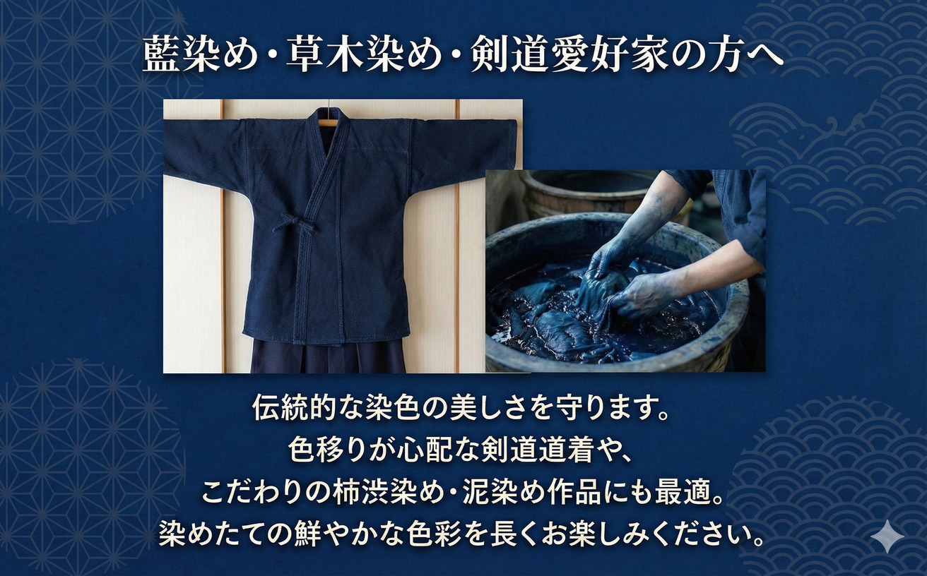 ✅使いやすい:素材の風合いを損なわず、従来の方法を超える強力な色止め効果を実現。