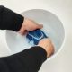 ③色止めする生地を①の希釈液に浸してください。生地を揉むなどして繊維の中まで液を浸透させます。