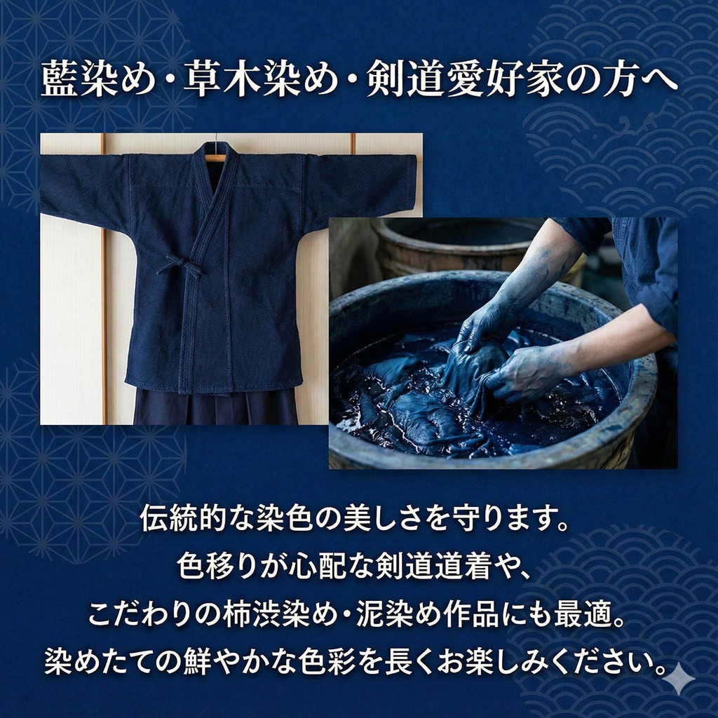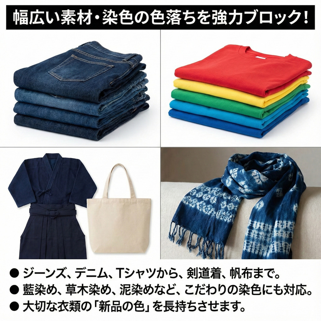 ✅使いやすい:素材の風合いを損なわず、従来の方法を超える強力な色止め効果を実現。