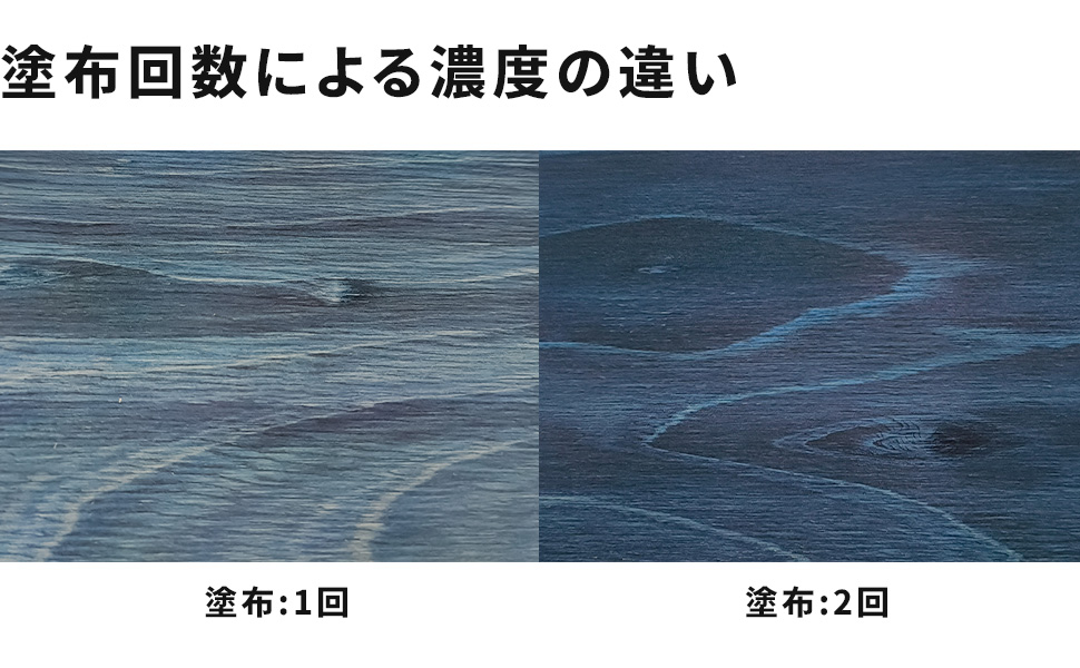 木目や濃淡を生かして、風合いを変えず自然に仕上がります。ペンキは木目が見えなくなりますが、本製品は染めていますので木目を生かした着色が可能です。衣料用の水性染料を使用しているため安全で無臭です。定着剤を配合しているため耐水性が高く、水濡れによる色落ちなどが起きにくいのが特徴です。通常の利用に際しては3倍程度の希釈率を推奨しておりますが、仕上がりや素材により希釈率を増減させて使用できます。